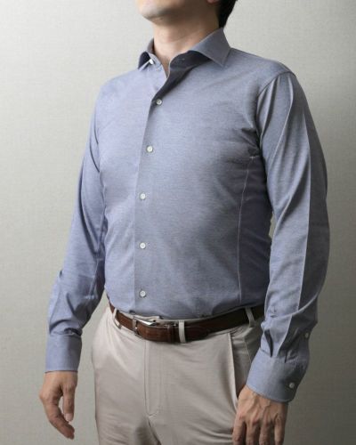 【INDUSTYLE TOKYO】ロイヤルシャンブレーシャツ 長袖 [襟型:ワイド / 胸ポケット:なし]【ご注文から1~3営業日以内出荷】【キングフィット】