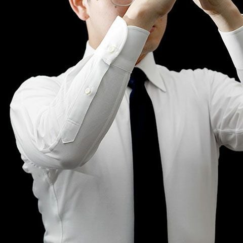 見た目には普通のシャツなのに、手のひらが肩に触るほどヒジを曲げても、引き攣れている感じがせず、ストレスは最低限。ヒジを曲げる動きをした時に、突っ張る感覚を極限まで抑えた設計を追求して完成しました。