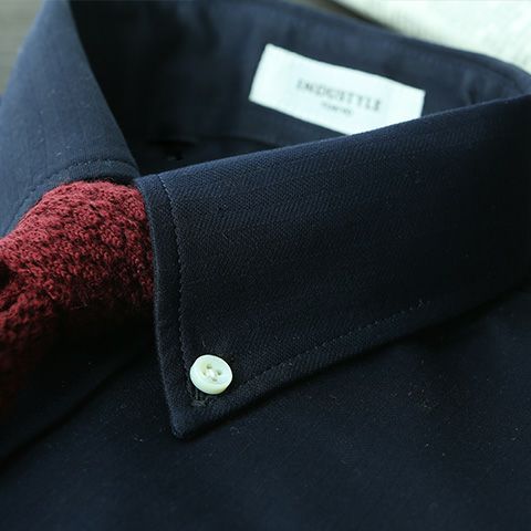 INDUSTYLE TOKYO(インダスタイルトウキョウ) 長袖 / オーガニックヘリンボーン / ワイドカラー / 胸ポケットなし / ニットシャツ【最短1~最長3営業日出荷】
