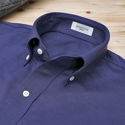 INDUSTYLE TOKYO(インダスタイルトウキョウ) 長袖 / ロイヤルピケ / ワイドカラー / 胸ポケットなし / ニットシャツ【最短1~最長3営業日出荷】
